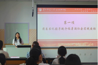 团委书记张子规从组织形式、实践选题、实践安排和注意事项等方面介绍了学院暑期社会实践整体安排,鼓励各个团队充分结合学院学科特色,深入社区、乡镇一线发现问题、解决问题,在实践中增长才干。