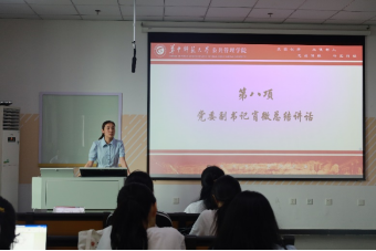 党委副书记肖微为社会实践队授旗并作总结讲话。她指出,同学们要珍惜参与暑期社会实践活动的机会,带着家国情怀、磨炼意志品质、发挥专业特长、遵守实践纪律,在社会课堂中“受教育、长才干、作贡献”。