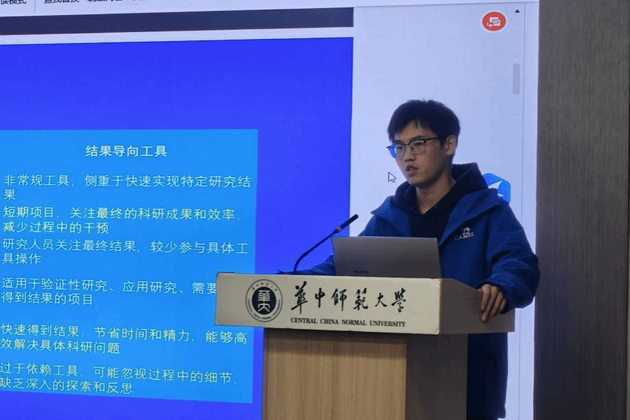 李显洪同学提出,在科研辅助阶段,Python、STATA等数据分析软件作为过程性工具,能为科研数据处理提供坚实技术支撑;而在结果性导向的科研辅助类工具中,他重点推介了AI工具IMA,可有效提升成果产出效率。