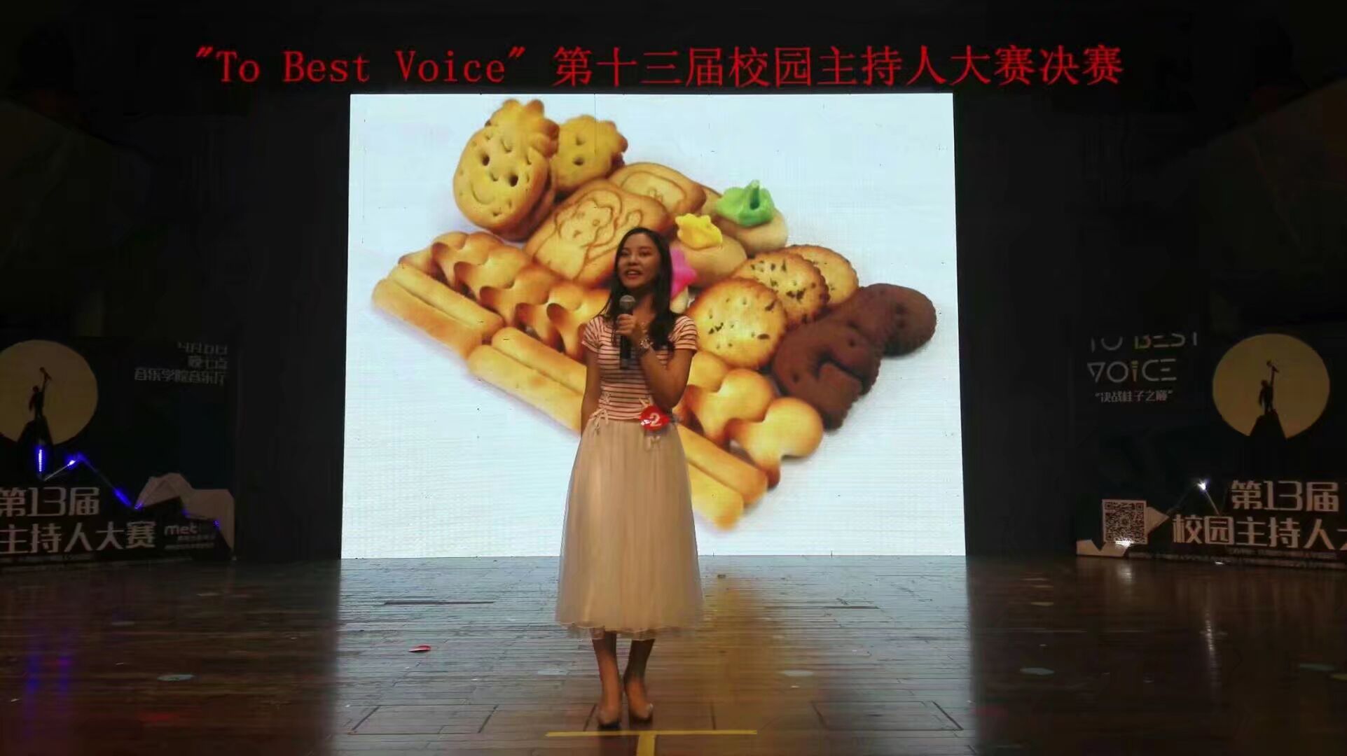 经过前两轮的精彩角逐,仍留在台上的5名选手进入最后一轮的模拟主持人环节。为考验选手们的临场应变能力,本环节在选手们表演时增加了突发状况。我院章沫嘉模拟《小小智慧树》中的主持人,载歌载舞,生动展示了小饼干的制作过程。本轮中所有选手们的临场应变能力以及语言编辑能力获得曹芯老师的好评。