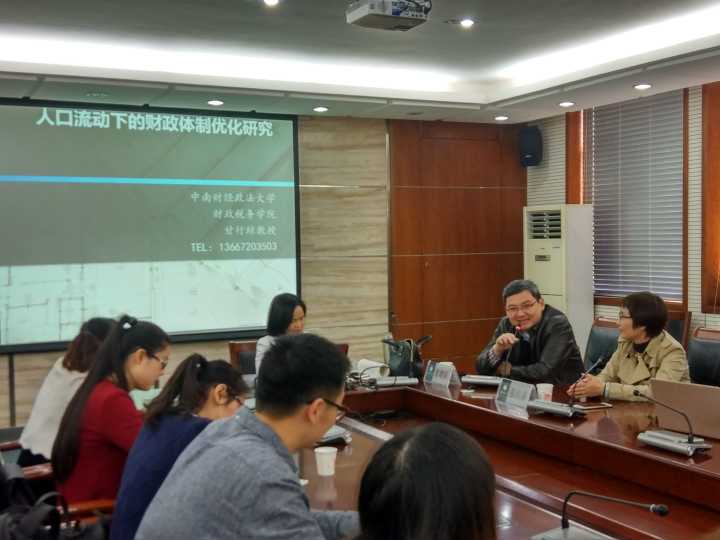 随后,甘教授从理论分析和实证分析两个方面剖析了目前我国人口流动现状下的财政体制。甘教授指出由于地方财政对户籍制度的依赖,目前我国地方政府依据户籍供给公共服务的倾向依然严重,流动人口的公共服务供给问题尚未得到妥善解决,现行财政体制还不能很好的适应人口频繁大规模流动的需要。此外,甘行琼教授还介绍了发达国家的人口流动及其相关公共服务的供给概况,并提出了人口流动下中国财政体制优化应遵循的对策建议,一是财政体制优化应将体现权利与义务的对等及注重供给与需求的衔接作为基本原则;二是有关政府间事权的合理配置,应以确保地方保留与受益范围大致对称的事权为基本原则,同时要细化并适当上收部分公共服务支出责任;三是要通过完善一般性转移支付制度、规范专项转移支付制度建立起适应人口流动的转移支付制度;四是可通过采取缓解地方土地出让依赖,改革房地产税及明确消费导向,完善增值税分享机制等措施构建起适应人口流动的地方税体系;五是要加快户籍制度改革、简化政府行政级次、完善绩效考核体系等配套改革的步伐。