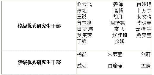 此次竞选活动,既给学生干部们提供了展示自我的舞台,又进一步调动了其参与学校日常管理的积极性。本着公平、公正、公开原则,我院经民主投票、差额选举,评选出2016-2017年度优秀研究生会干部,现将此次选举产生的26位优秀研究生干部名单公示如下:如有异议,请联系研究生辅导员办公室(027-67865795)。