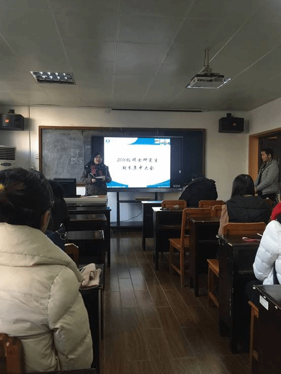 公共管理学院研究生讯(通讯员:袁迎辉)2016级研究生期末集中大会于1月12日上午10点在我院319教室举行,研究生教学秘书欧阳铮老师、辅导员魏寅老师、兼职辅导员胡丹学姐及2016级全体研究生参与此次大会,此次大会由曾志鸣主持。