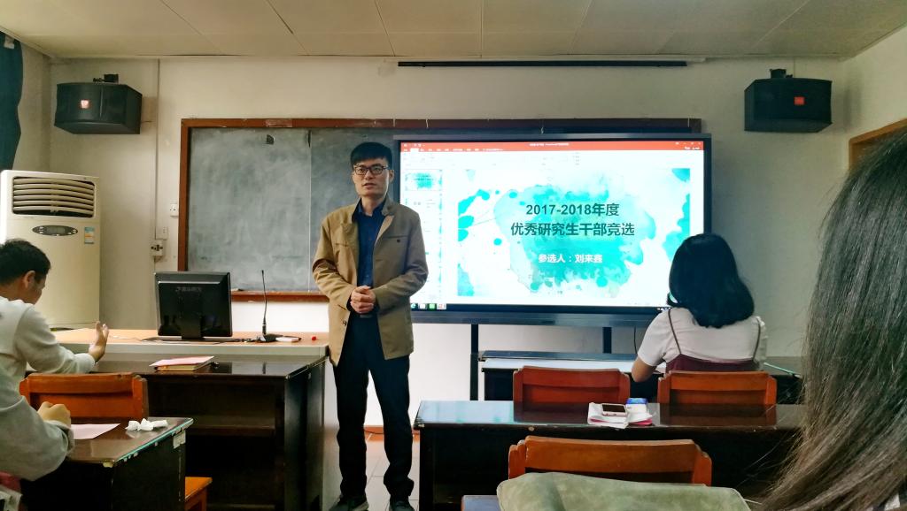 竞选大会采取学生干部上台演讲的形式,研一、研二分开竞选,由研一全体学生公开民主投票选出研一10位优秀学生干部,研二学生通过民主投票选出研二10位优秀学生干部。各位竞选者通过激情演讲与大家分享了研会工作或支部工作的付出与收获,展示了自己的自信与实力。