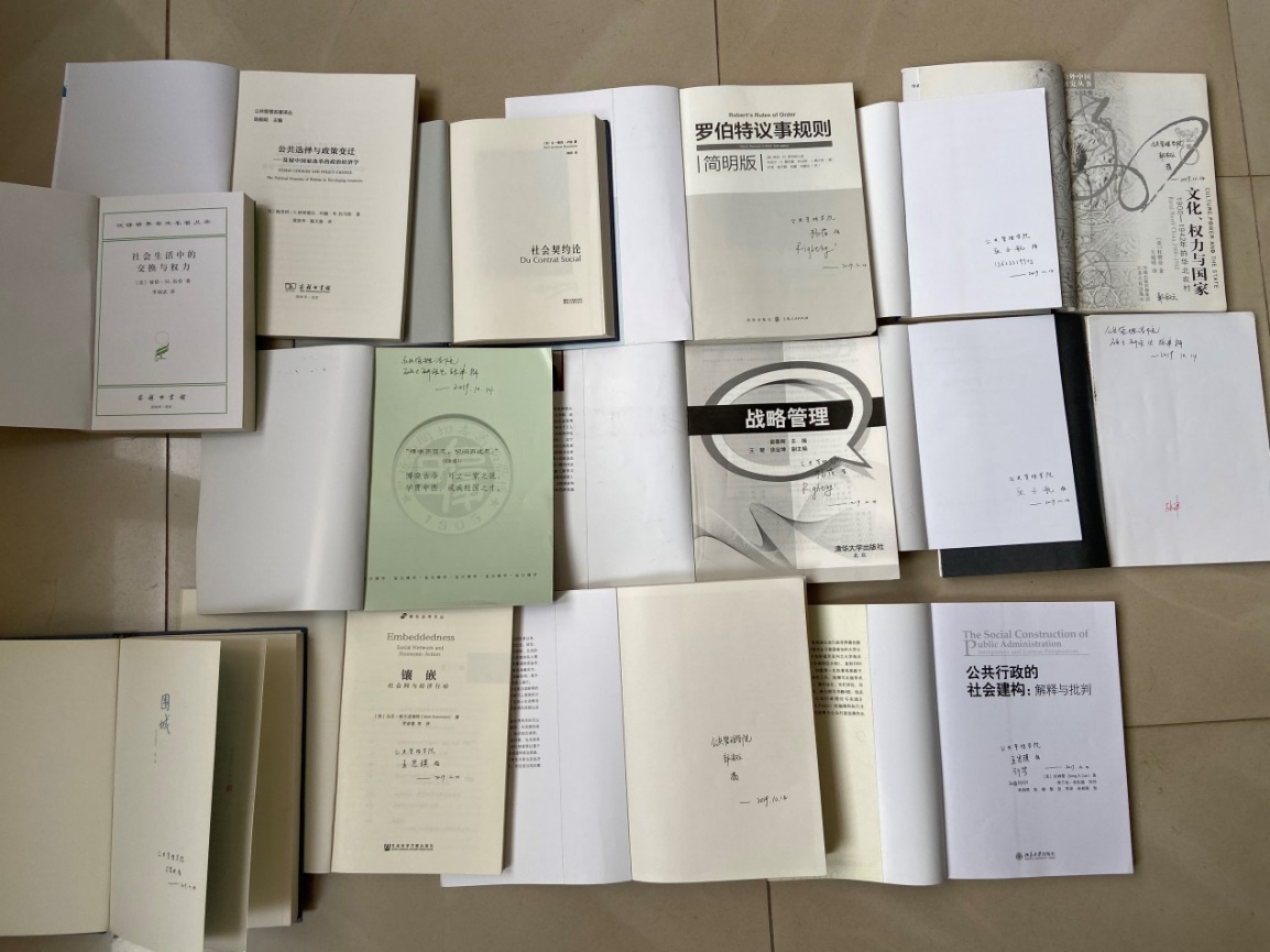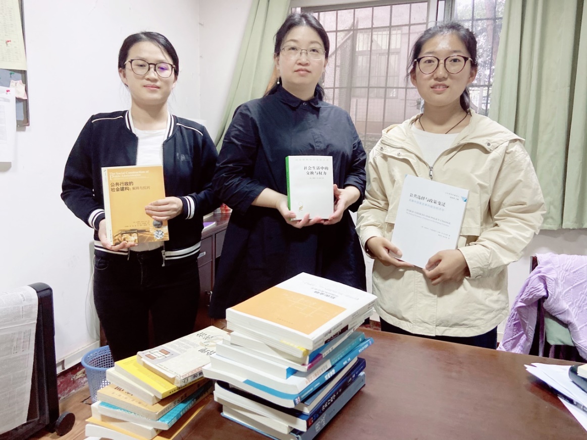 各位国奖获得者根据自己的专业和读书经验,向我院资料室捐赠相关专业和课外书籍。薛洪岩捐书:《社会契约论》、《公共选择与政策变迁:发展中国家改革的政治经济学》郭淑云捐书:《文化、权利与国家》、《后街金融:中国的私营企业主》;杨莼:《战略管理》、《罗伯特议事规则》;张津捐书:《乡土中国》、《公共行政学》;张子航捐书:《社会生活中的交换与权力》、《贫困与饥荒》、《国民财富的性质和原因的研究(上卷)》;王思琪捐书:《公共行政的社会建构——解释与批判》、《镶嵌——社会网与经济行动》、《围城》。