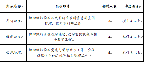1.招聘岗位:科研助理、教学助理、管理助理。