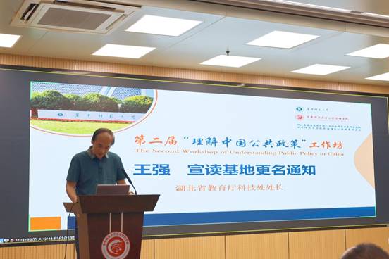 开幕式由我校公共管理学院院长卢新海教授主持。湖北省教育厅科技处处长王强宣读湖北省普通高校人文社会科学重点研究基地更名通知:华中师范大学湖北地方政府治理与地方发展研究中心正式更名为政府治理与公共政策研究院。王强处长希望以此次更名为契机,进一步加强建设与管理,凝练学科方向,强化学科特色,不断提升研究水平,为推动政府治理现代化作出新的更大贡献。副校长李鸿飞、《公共行政评论》副主编牛美丽、华中师范大学学报曾巍副主编先后致辞。李鸿飞副校长介绍了我校办学历程及公共管理学院发展概况,勉励公共管理学院要以此次工作坊为契机,在中国共产党成立一百周年的背景下,继续聚焦中国政策的过程,广泛探讨中国政策问题,为深入理解中国公共政策贡献思想力量,以公管学人的独特方式为党的百年华诞献礼。