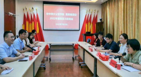 随后,黄鹤楼酒业2022年专业实习总结会于黄鹤楼酒业有限公司党建会议室举行,黄鹤楼酒业有限公司人力资源中心总监张佳、招聘培训部经理王超、招聘主管张倩倩,公共管理学院副院长周凤华,团委书记廖伟及全体实习学生参加,带队指导老师徐军玲主持会议。