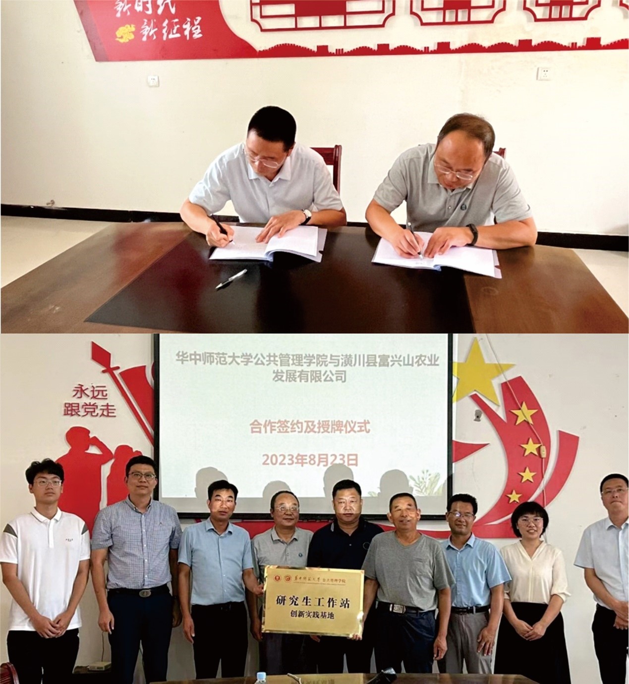 公管在线讯(通讯员 江驭鲲)2023年8月23日,华中师范大学公共管理学院与潢川县富兴山农业发展有限公司合作共建研究生工作站(创新实践基地)签约及授牌仪式在河南省信阳市潢川县举行。