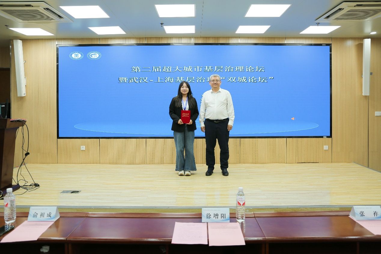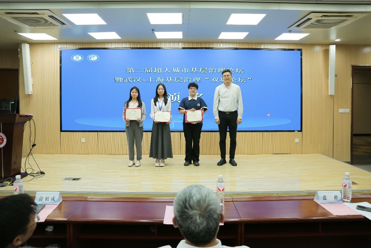 在闭幕式上,华中师范大学公共管理学院院长徐增阳,副院长张祚、周凤华为优秀论文作者颁奖。论坛协办单位上海外国语大学(全球)城市基层治理研究中心主任俞祖成教授致辞,指出城市与城市、理论与实践对话交流对于启迪治理智慧、讲好中国故事的重要意义;华中师范大学公共管理学院院长徐增阳对本次论坛进行总结,提出持续拓展“双城对话”与“双界对话”模式,进一步深化学术成果的转化与应用,努力打造超大城市基层治理长效交流平台,为推动超大城市基层治理不断发展贡献更多智慧和力量。