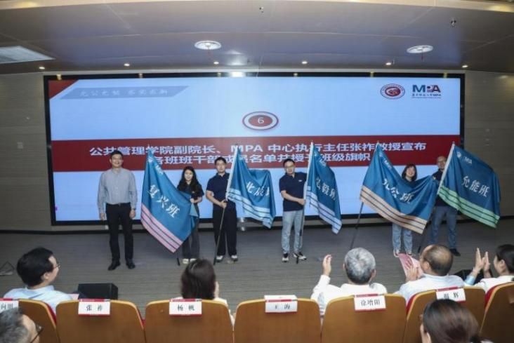 典礼上,公共管理学院副院长、MPA 中心执行主任张祚教授宣布各班班干部成员名单,并为班级授予旗帜;各班班长依次发表班级宣言,铿锵有力的承诺点燃现场热情,将典礼气氛推向高潮。