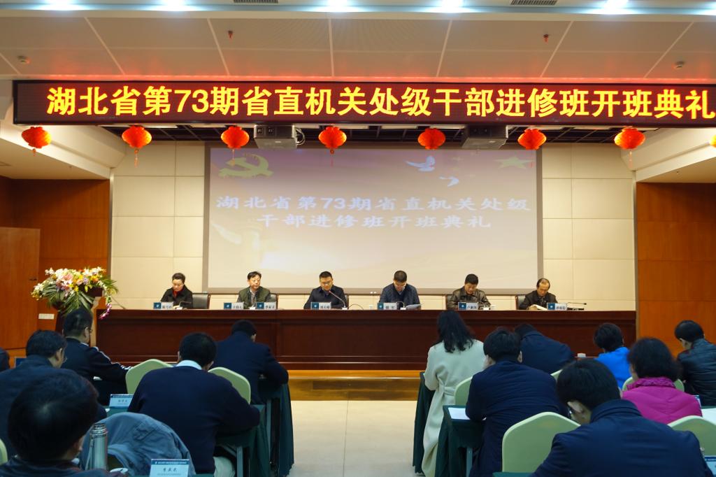 公管在线讯(通讯员:杨玉玲 刘瑞)3月1日上午,湖北省第73期省直机关处级干部进修班开班典礼在我校管理教育综合大楼举行。省委组织部干教处副处长刘天根,华中师范大学党委副书记骆军,公共管理学院院长卢新海,公共管理学院副院长陈雪玲,本期培训班班主任谭根稳等出席了此次典礼,典礼由公共管理学院党委书记李家文主持。