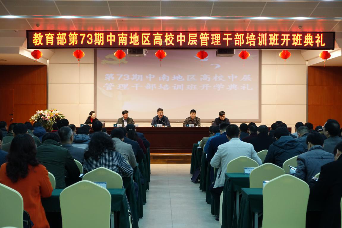 (通讯员 李小凡 刘瑞)3月1日上午,教育部中南地区第73期高校中层管理干部培训班在我校管理教育综合楼多功能厅举行。华中师范大学党委副书记、教育部中南教育管理干部培训中心主任骆军,公共管理学院院长、教育部中南教育管理干部培训中心常务副主任卢新海,公共管理学院副院长、教育部中南教育管理干部培训中心常务副主任陈雪玲,本期培训班班主任魏寅,副班主任陈晨等出席了此次典礼,典礼由公共管理学院党委书记李家文主持。