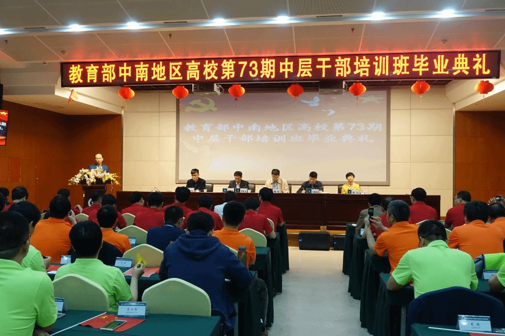 公管在线讯(通讯员 李小凡 刘瑞)4月27日下午,教育部中南地区高校第73期中层管理干部培训班毕业典礼在我校管理教育综合楼多功能厅举行。华中师范大学党委副书记、教育部中南教育管理干部培训中心主任骆军,公共管理学院分党委书记李家文,公共管理学院院长、教育部中南教育管理干部培训中心常务副主任卢新海等出席典礼。典礼由公共管理学院分党委书记李家文主持。