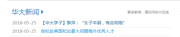 公管在线讯(记者 许心雨)5月25日,学校官网首页华大新闻栏目报道我院优秀毕业生黎萍事迹,讲述公管好故事。