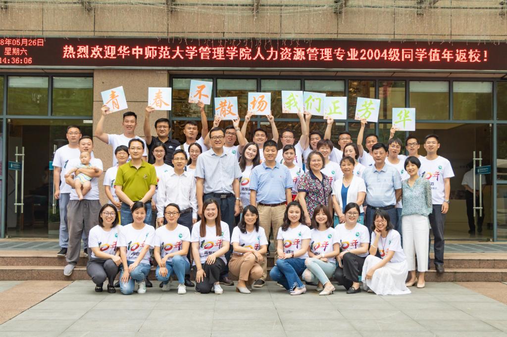 公管在线讯(通讯员 郑玮博)光阴变换,十年一瞬。“忆往昔,书生意气同窗数载;看今朝,赤子情怀共聚一堂”,5月26日,公共管理学院人力资源管理专业2004级三十余位校友再聚桂子山,和师长老友畅忆往事、再叙情谊。下午2时30分,全体参会人员在管理教育综合楼门前合影留念,然后在公共管理学院二楼会议室如期举行座谈会。公共管理学院党委书记李家文,院长卢新海,专业导师刘筱红、谌虹、田鹏,教务处副处长、原辅导员胡中波,人事处职员、原辅导员庄甲鹏,学院办公室主任林志军等老师参加了此次座谈会。座谈会由2004级校友雷燕主持。