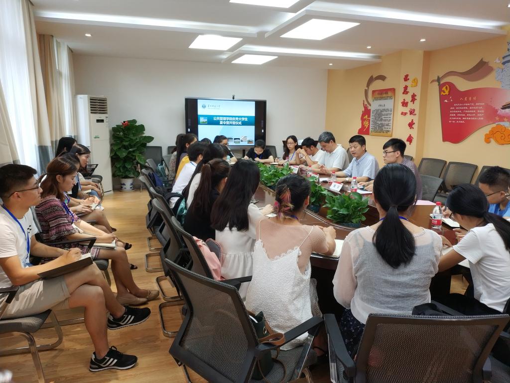 公管在线讯(通讯员:张海宁 冉鹏程)2018年7月3日上午,华中师范大学公共管理学院2018年优秀大学生夏令营开营仪式在公共管理学院二楼会议室隆重举行。公共管理学院院长卢新海教授,副院长徐增阳教授,研究生辅导员魏寅老师以及研究生会主席曾志鸣同学出席了本次开营仪式,开营仪式由副院长徐增阳教授主持,来自全国重点高校的21位优秀大学生参加了本次夏令营活动。