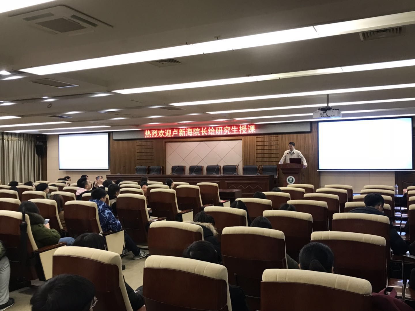 (公管在线讯 通讯员 袁梦雯 洪雅咏)2018年12月20日上午,第35期百年求索•院长讲坛在我校逸夫国际会议中心圆满举办。我院院长卢新海教授应邀做客“百年求索院长讲坛”发表了题为《责任、使命与担当》的专题讲座。本次讲坛由公共管理学院兼职研究生辅导员王晓丹主持,论坛上座无虚席,不仅有我院全体博士和硕士研究生,其他多个学院的研究生也慕名参加。