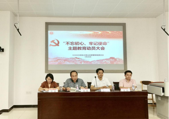 公管在线讯(通讯员 王彤)9月20日下午,公共管理学院“不忘初心,牢记使命”主题教育动员会在管理教育综合楼102教室举行。“不忘初心,牢记使命”巡回指导组第五组组长洪早清和副组长龚炜到会指导,我院师生党员参加会议,我院党委副书记曾艳主持会议。