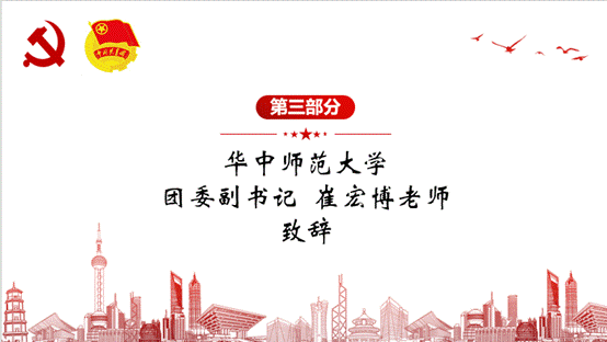 华中师范大学团委副书记崔宏博老师表示,疫情期间,在华中师范大学党委领导下,校团委带领华师青年师生凝心聚力,积极响应习近平总书记作出的一系列重要指示,坚决拥护党中央、国务院作出的重大部署,积极引导青年师生有序地参与疫情防控工作,贡献青春力量。先后通过线上途径开展了形式多样的抗疫主题团日活动和“桂子青春的‘疫’义”网络文化作品征集活动;踊跃组织青年志愿者参加疫情防控线上、线下志愿服务,鼓励青年师生做好防护的同时到社区报道或线上辅导医护人员子女,期间涌现出了程世雄、田恬等一批青年榜样;组织恽代英青年讲师团,在哔哩哔哩创新性的开展线上爱国主义教育得到学生一致好评。此外,崔宏博老师还表示,在抗疫过程中,北京师范大学政府管理学院和华中师范大学公共管理学院在互相交流、相互支持中积累了深厚的友谊,并衷心希望两院之后的合作能更上一层楼,争取取得更大的交流成果。