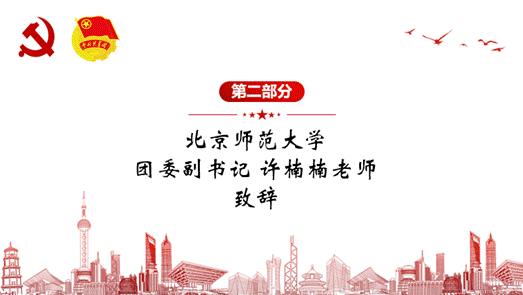 随后,北京师范大学团委副书记许楠楠致辞,她表示,面对疫情大考,北京师范大学党委第一时间启动了公共卫生类突发事件应急预案,成立防控工作领导小组,带领广大师生积极投身到疫情防控阻击战中。党有号召,团有行动,各级团组织、学生会组织、学生社团和广大团员青年、团干部立即行动起来,坚定不移地落实学校党委和上级团组织的工作部署,有序参与防控工作,在打赢疫情防控阻击战中当好了党的得力助手和生力军,用实际行动彰显着北师大青年的时代担当和责任,更彰显了“学为人师、行为世范”的校训精神。同时,校团委面向全校各院系级团委和团支部,开展学习习近平总书记给北京大学援鄂医疗队全体“90后”党员回信的线上主题团日活动和“绽放战疫青春·坚定制度自信”五四青年论坛——团员青年同上一堂云团课线上活动,以激励和引领我校青年学子进一步坚定制度自信,在新时代进一步传承弘扬五四精神,在党和人民最需要的地方贡献力量、绽放青春。与此同时,在疫情期间,北京师范大学与华中师范大学开展“一对一帮扶”,两校师生在学科建设、就业指导、党团建设等领域互相交流、相互学习,并结下了深厚的友谊。
