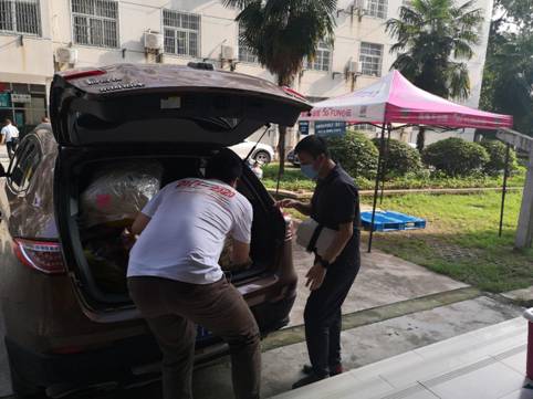 志愿者魏来老师、柯善淦老师为学生搬运行李并送到校门口