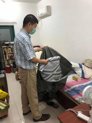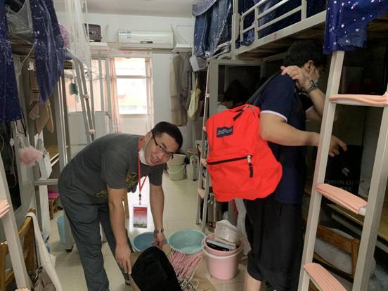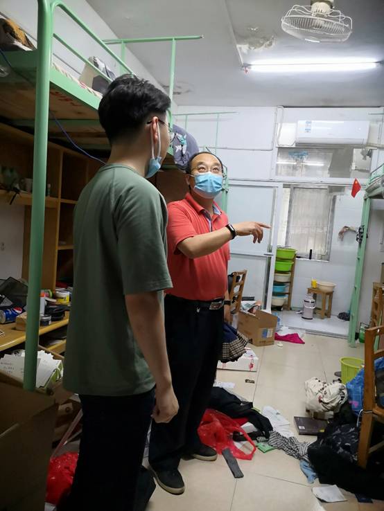 公共管理学院院长卢新海教授晚上在宿舍帮毕业研究生收拾行李