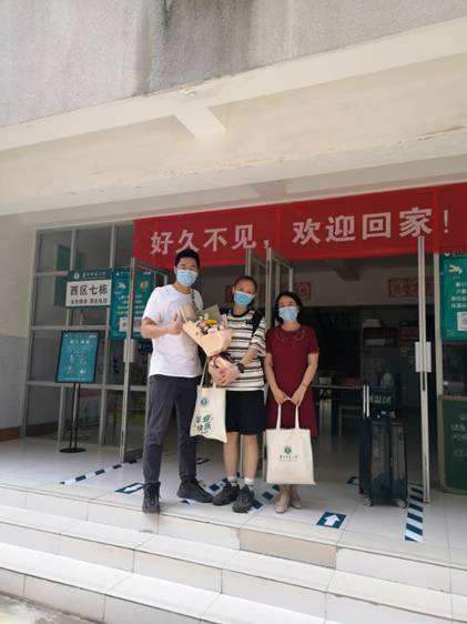 考入学院将继续读研的毕业生杨亚黎说,在这特殊的疫情期间,本以为毕业返校会充满冷清与遗憾,但在这次返校过程中我却收获了满满的感动与幸福,真真切切体会到何谓“爱在华师,爱在公管”。在到校之前,因为我的车次晚点,接站老师还贴心地打电话问我情况,让我一定要注意安全。到宿舍后,相处四年的宿管阿姨热情温暖地为我办相关手续,一句“欢迎回家”,让我差点感动落泪。在收拾好东西后,彭校长、韩部长、李部长等学校领导以及揭书记、曾书记、佐老师到宿舍来看望我们,关心与询问我相关情况,两位书记和佐老师还顶着酷热亲自帮我搬运行李,看着老师们辛苦的背影,我的心中充满了温暖与感激的热流。在我返校时正值端午节,学院领导特意到宿舍为我们送上关心祝福与小礼物。对于学校以及学院细致入微的返校安排与无微不至的关怀,我的感激之情无以言表,同时我更为我是“华师人”和“公管人”而骄傲自豪。