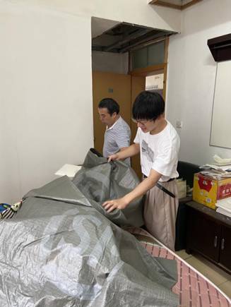 导师孙永勇老师和志愿者刘超老师为学生打包行李