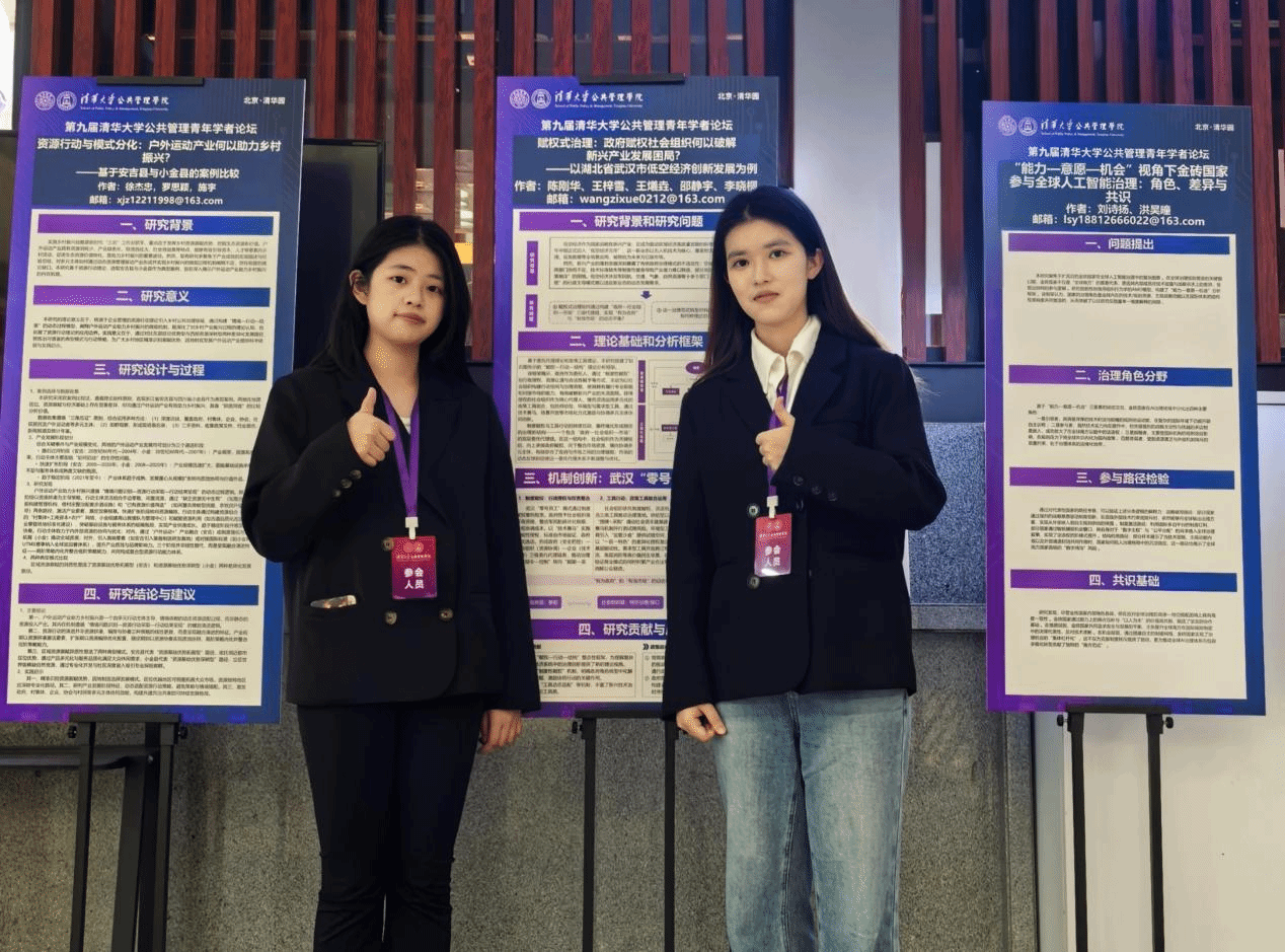 4月18日,在清华大学即将迎来建校115周年之际,第九届清华大学公共管理青年学者论坛暨2026年春季清华大学公共管理学院博士后论坛、清华大学第828期博士生论坛在清华大学公共管理学院举行。我院行政管理专业2023级本科生王梓雪、王爔垚受邀参会。